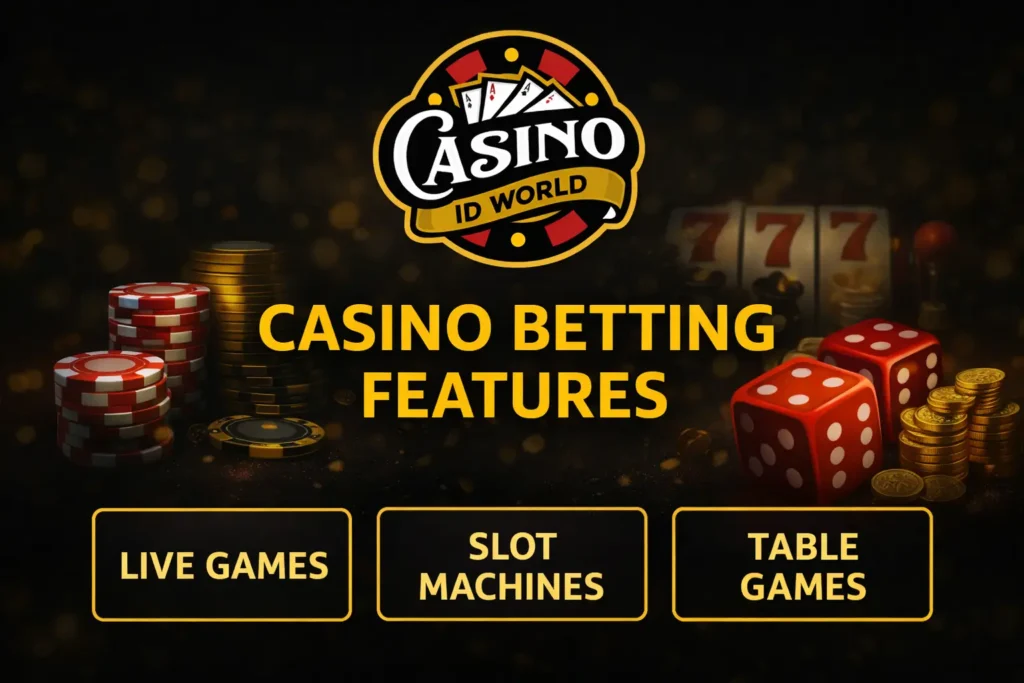Along with sports betting, Casino ID World provides a complete online casino experience. Players can enjoy popular games such as Teen Patti, Andar Bahar, Roulette, Blackjack, slot games, and more. With bonuses, rewards, and interactive features, the casino section keeps gameplay exciting and rewarding.